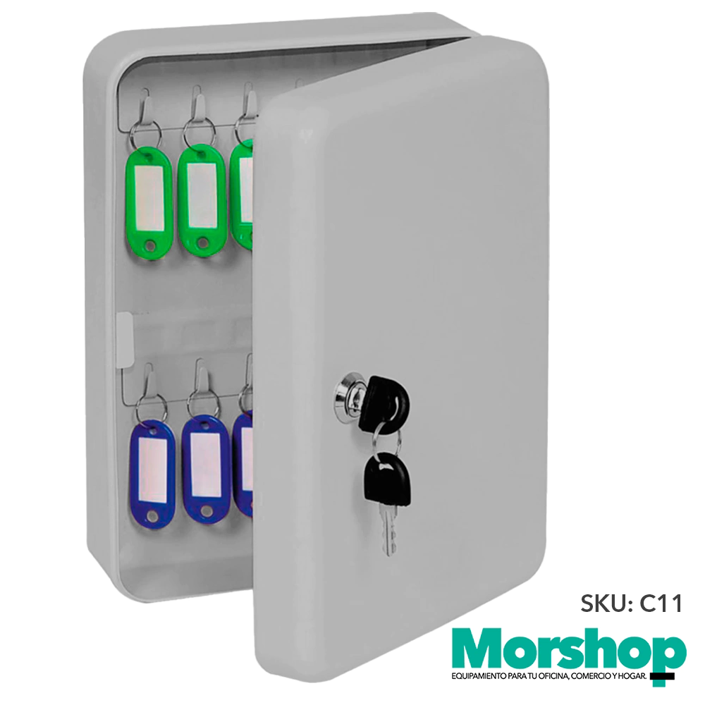 Los ganchos incorporados permiten colgar las llaves de forma segura y accesible, evitando el desorden y facilitando la búsqueda rápida de cada llave. Este armario no solo es funcional, sino que también se convierte en un elemento decorativo que complementa la estética de tu espacio. Su construcción de alta calidad asegura durabilidad y resistencia, convirtiéndolo en una inversión inteligente para mantener el orden.