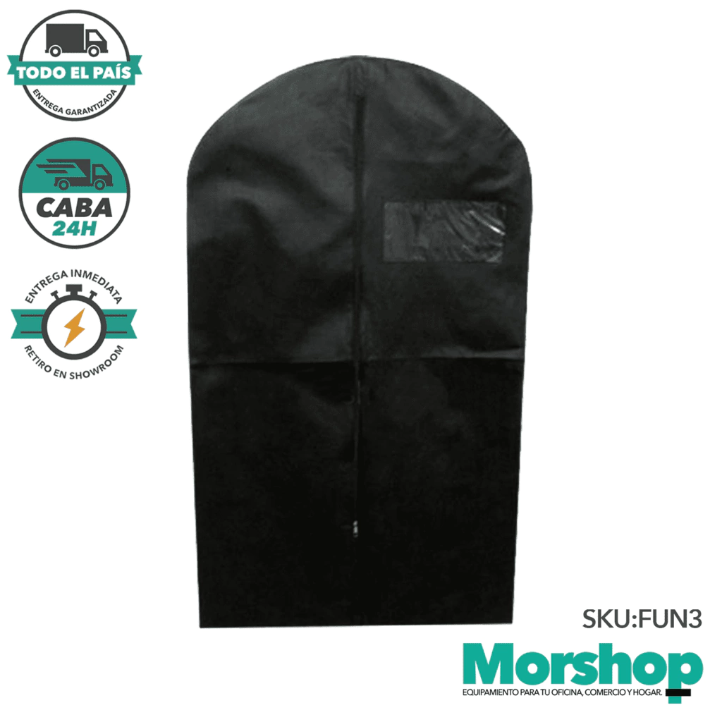 Funda con cierre para ropa, trajes, vestidos, camperas, abrigos, etc Confeccionada en friselina de 60 grs. Con visor transparente para visualizar la prenda. Ideal para proteger y cuidar la ropa. Medidas: 60 x 100 cm