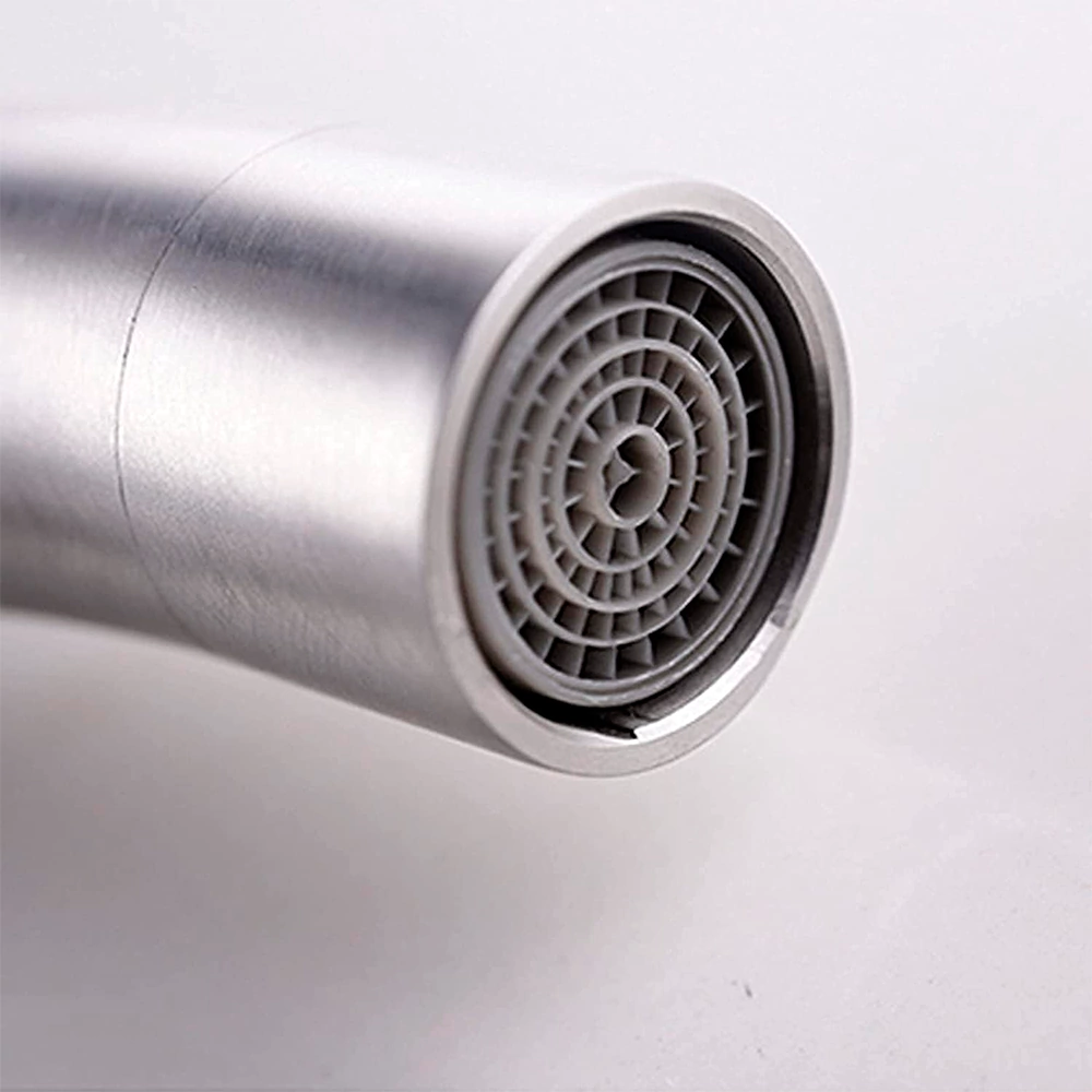 El aireador hace que la salida del agua sea espumosa, suave y con menos presión. Esto minimiza las salpicaduras y posibilita un ahorro de hasta un 30 %. ¿No es genial?