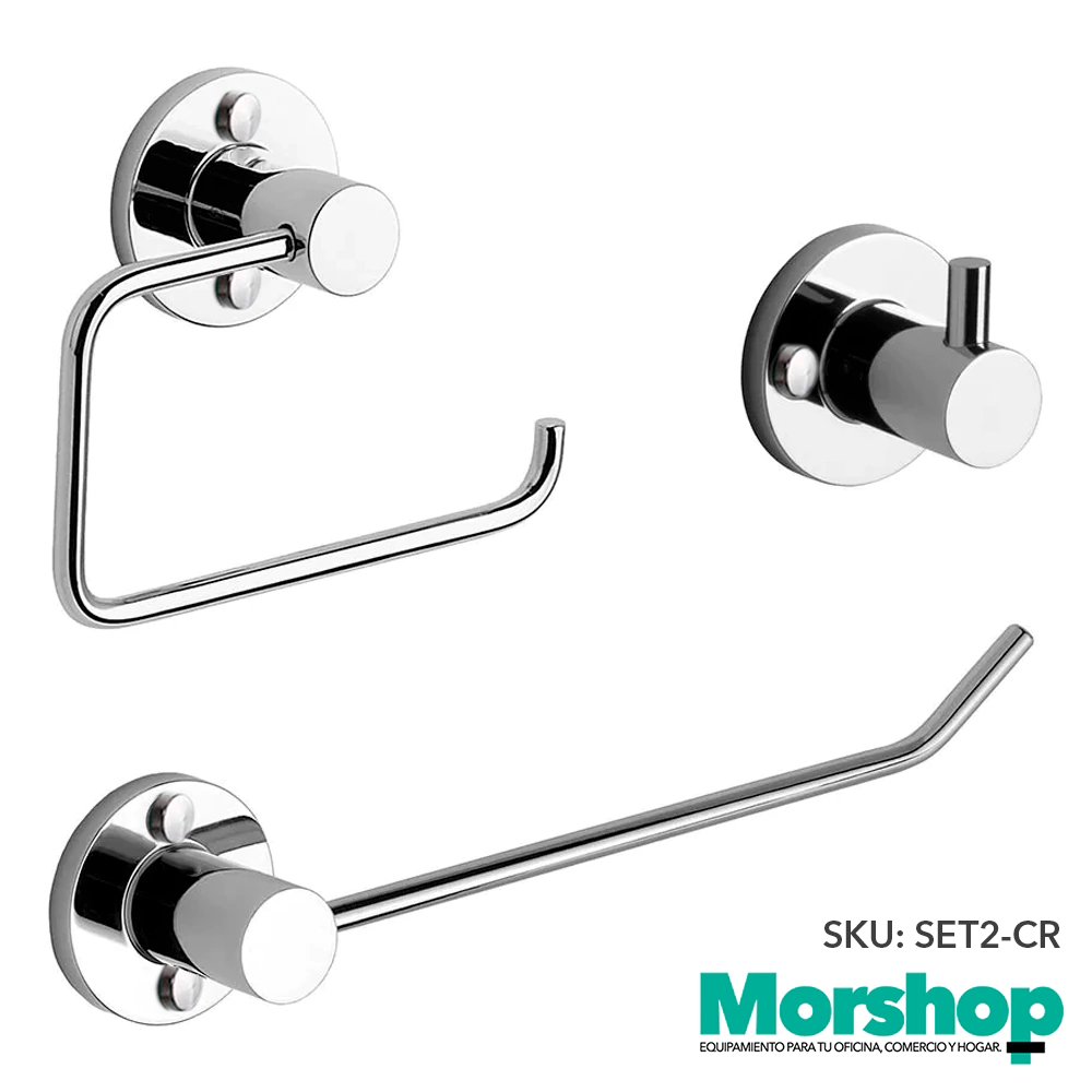 Set de 3 piezas para Baño color Cromado. Acero Inoxidable 304