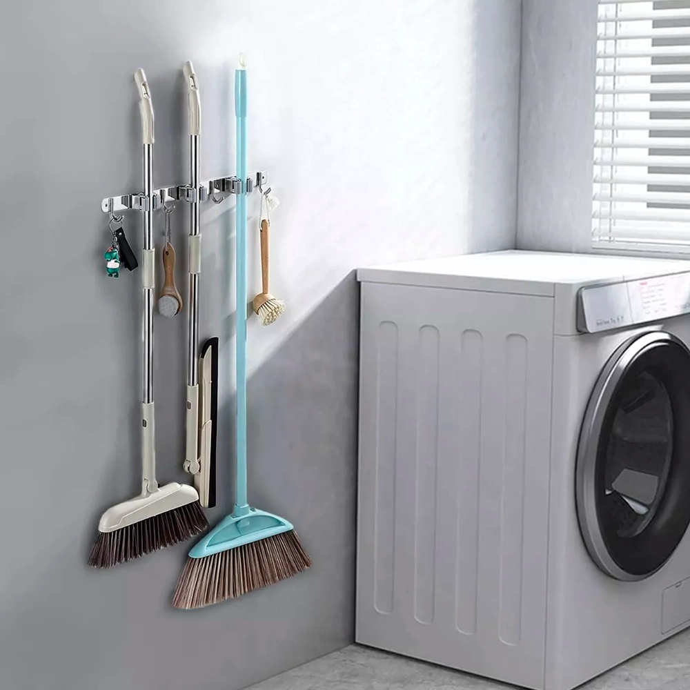 -Colgá y ordena escobas, escobillas, mopas, escurridores, trapos, cepilllos, esponjas, etc