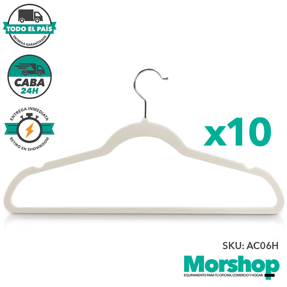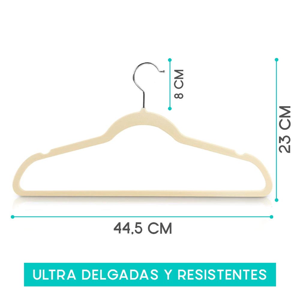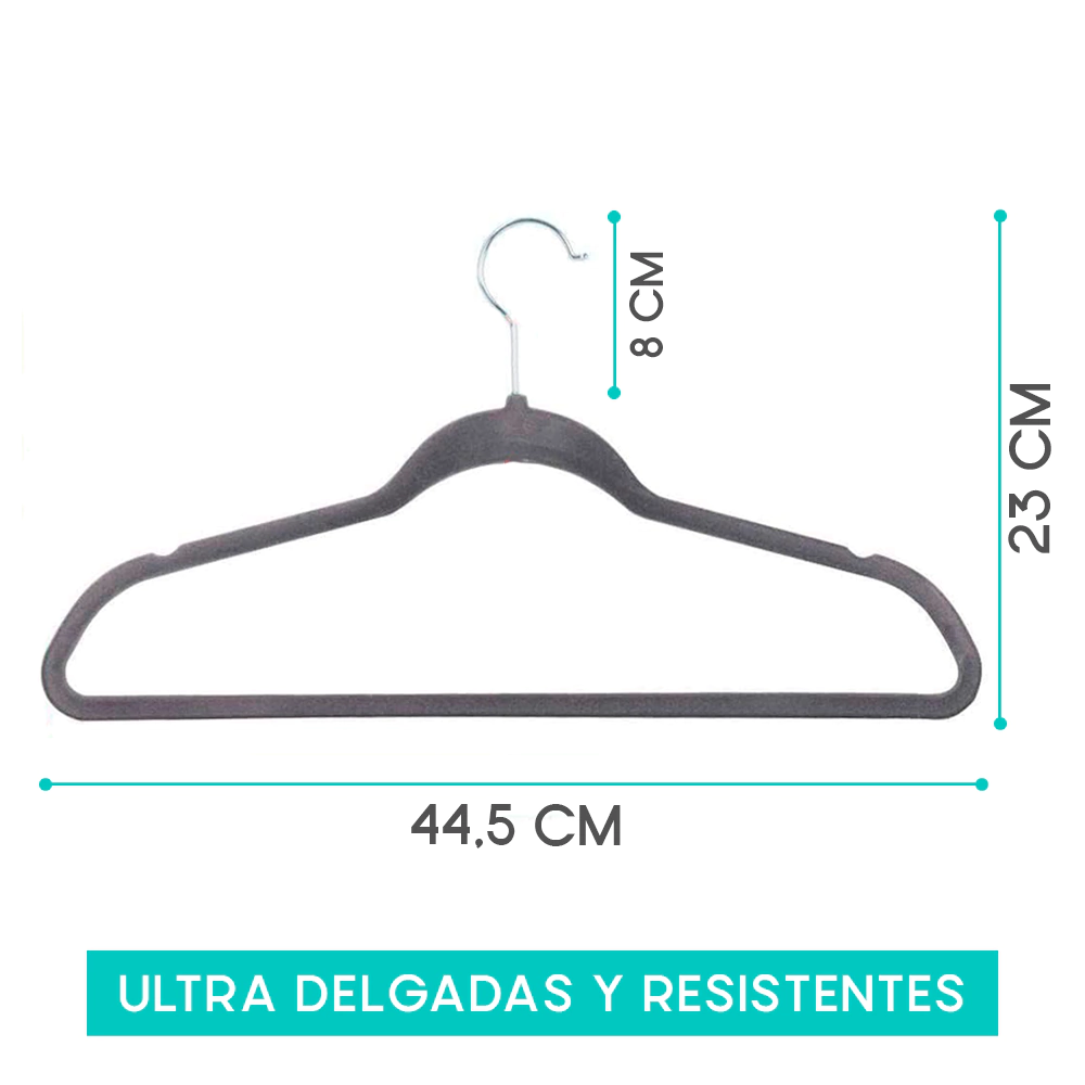 Perchas Slim ultradelgadas y reforzadas. Antideslizante, con barral y muecas para breteles a los costados. Ideal para ahorrar espacio en el placard.