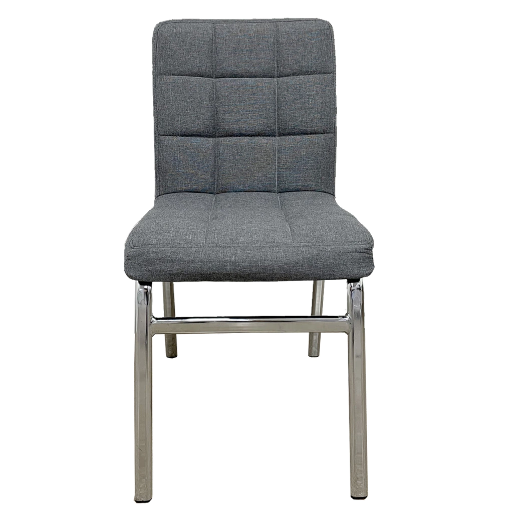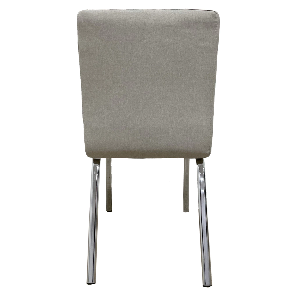 Silla Square, tapizada en tela simil lino. Asiento y respaldo de alta densidad. Base reforzada totalmente cromada. Excelente calidad y terminación.