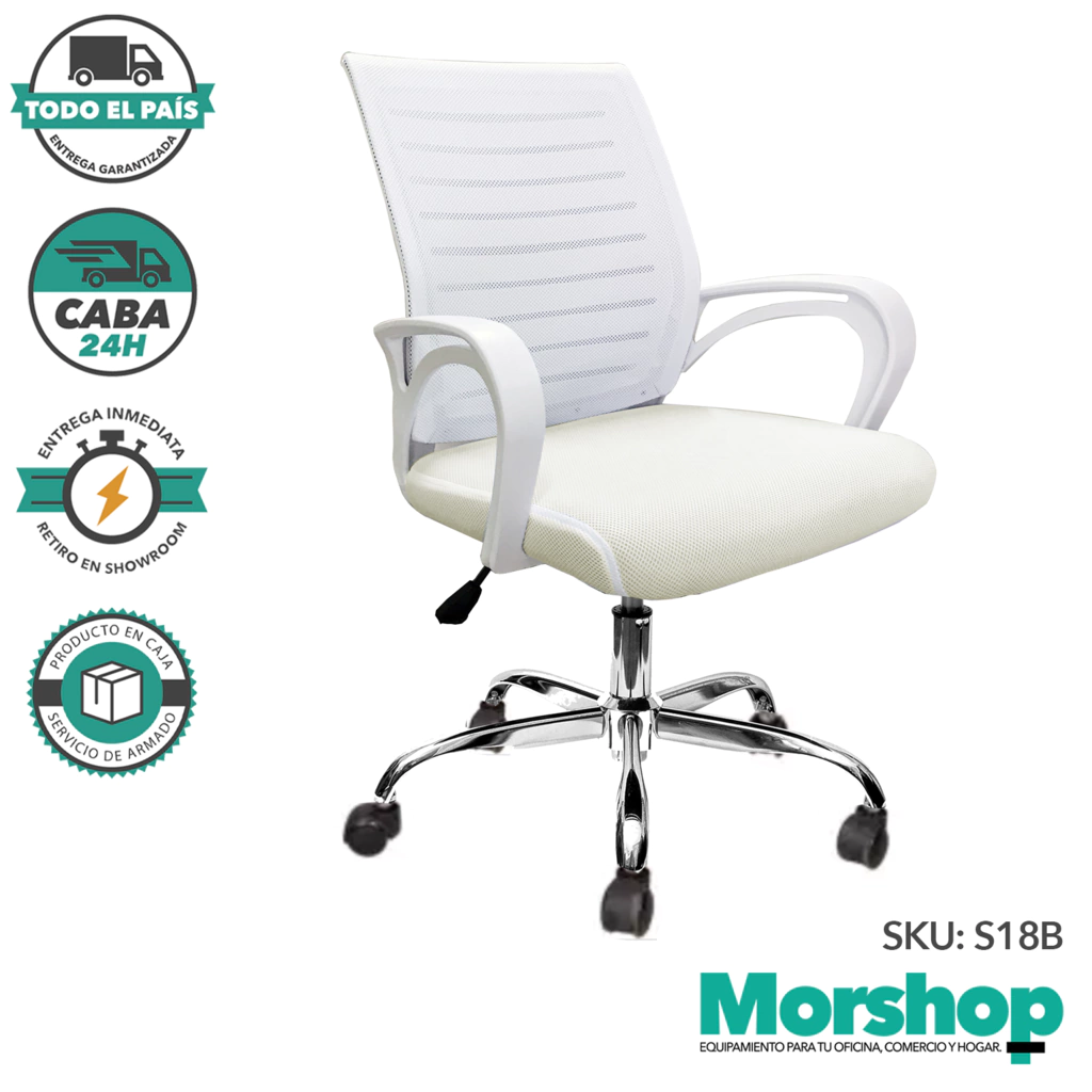 Silla de oficina para escritorio con apoyabrazos. Giratoria y regulable en altura. Asiento con relleno de alta densidad. Respaldo con tela mesh. Moderno diseño.